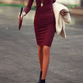 tamanho médio uma só peça um grande laço (no fundo das costas) decote em V casaco irreverente e diferente cabelo solto botins O meu look alternativo:...