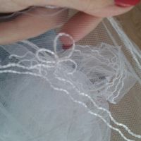 Olá Noivinhas! Hoje a minha mãe trouxe-me o seu véu para eu ver se gosto e usar. Penso pedir para tirar o aplique e colocar algo mais moderno (este véu tem 32 anos...) e pelo tamanho tem cerca de 6...
