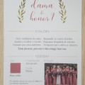 Nos convites para as Damas de Honor fiz frente e verso, e descrevi as funções que lhes eram pedidas e ainda o estilo do vestido que queria que usassem.