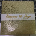Conclusão, arriscámos e encomendámos no Aliexpress 50 convites por 62,28€ já impressos de corte a laser como queríamos e com brilho, claro. Não fosse eu a louca do glitter lol. Foi enviar o PDF para eles e esperar pela prova que ficou exactamente como queríamos! Ah! Deixem-me dizer que o convite tem um cartão (RSVP) que não nos faria sentido usá-lo como tal. Então aproveitámo-lo e escrevemos algumas informações que achamos úteis e mais lógicas do que o tal RSVP.