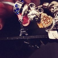 Adoro a Pandora e os últimos 4 pendentes representam muito muito bem este ano 2018. Recebi o coração dourado quando fizemos 13 anos de namoro, tenho o mickey de simboliza a Disneyland Paris que fomos visitar em Fevereiro, e a Torre Eiffel que foi o noivinho que ofereceu nos meus anos que simboliza o local onde fui pedida em casamento, sendo que o último tem as cores do casamento! Não podia ter pedido mais, mais ainda recebi mais!