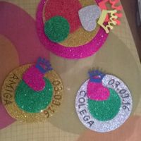Quase todos prontinhos os meus crachas para a despedida de solteira o meu é o maior Crachas