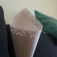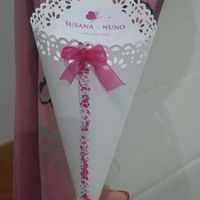 Lembram-se de ter mostrado o meu cone, e pedir opiniao para colocar a decorar? Vi este cone na net e acho que ficava bem o papel que tem a toda a volta. Algo rosa com o laco. Sabem como posso...