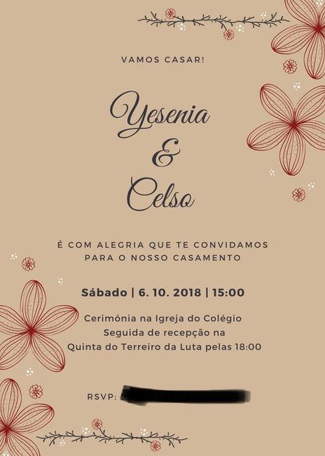 Olá noivaças! É o meu primeiro debate. Sou uma noiva muito recente e até há 3 ou 4 dias nem sabia que o Canva existia. Hoje decidi testar aquilo para ver se começava a idealizar o convite. Foi o primeiro que fiz. Mesmo depois de testar outros...