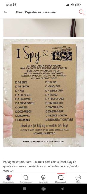 Olá a todas! Gostaria de pedir a vossa opinião. Nós optámos por não ter fotógrafo. O casamento é pequeno e muito low cost pelo que estávamos a pensar comprar umas câmaras descartáveis para os convidados fotografarem tudo com uma certa "ordem" para...