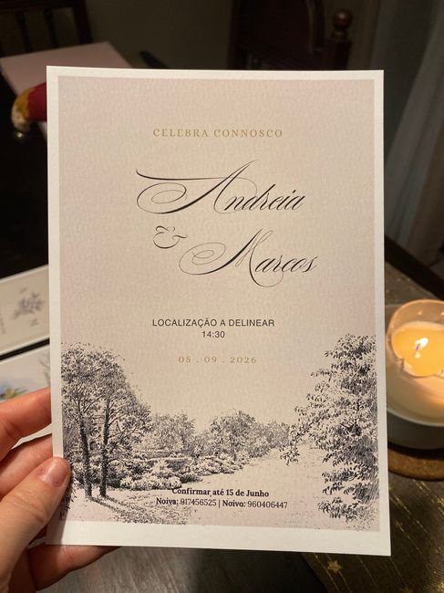 Há 118 diasBoa noite Noivinhas! Por aqui decidimos fazer nós os convites, como so vamos escolher o nosso Venue em Janeiro os convites ainda não estão com localização, MAS CALMA, até serem enviados vamos alterar 😁 Precisamos da vossa ajuda e gosto, qual gostam...