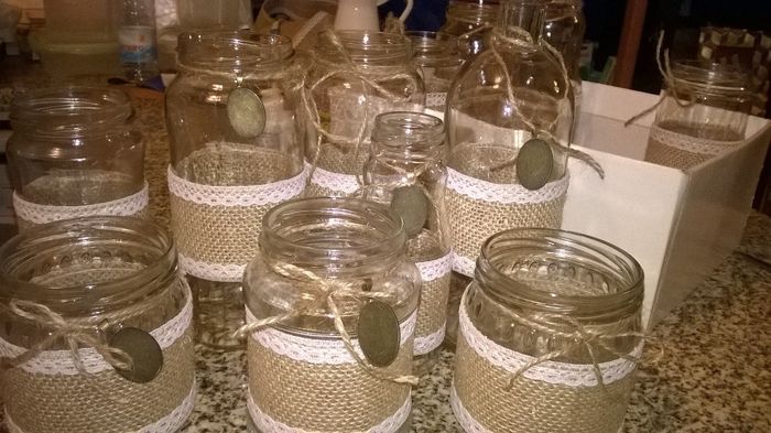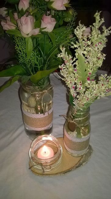 O que acham dos centros de mesa com frascos de vidros? A quinta onde vai ser o copo de àgua não têm nada para a decoraçao portanto fazems nós e eles ajudam com 10€ por mesa. Lembrámos nos de colocar na base de espelho dois frascos de vidros ( um mais...