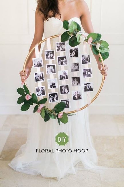 Meninas, vi esta ideia no facebook e pensei partilhar com vocês. Pelos vistos é feito com 1 hula hoop como "moldura" e com alguma fita para segurar as fotos. Depois é só colar as flores e as fotos. O que acham?