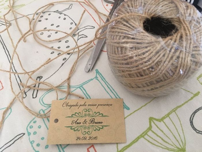 Mais um trabalhinho.Tivemos a colocar o fio para depois atar nas garrafas do licor.