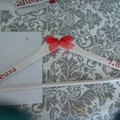 Há 3563 diasBem venho aqui deixar os cabides k fiz pras damas de honor, pra minha mae e cunhada, como a minha sogra ja faleceu sera a minha cunhada a fz um pouco esse papel.Os das damas sao c letras vermelhas e os com letra prata sao da minha mae e cunhada. Que...