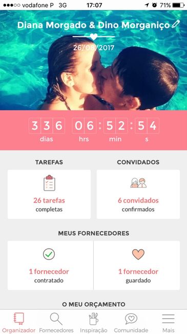 Olá noivinhas 😊 Sou a Diana, tenho 25 aninhos, nasci em Leiria a 15/07/1991. Sou uma pessoa extrovertida, amiga, stressada, brincalhona mas também tenho picos de humor :D Gosto de ter vários conhecimentos, dai ter três cursos diferentes, acção social, estética e auxiliar de veterinária e no entanto trabalho numa fábrica de auto-radios :P Sobre o meu noivinho, tem 29 anos, é sem duvida o meu pilar, o meu porto de abrigo ⚓️ Nosso casamento inicialmente estava marcado para 26 de Agosto mas tivemos que antecipar para 1 de Julho, no início iríamos casar "2" e neste momento vamos casar "3". Descobri que estava grávida e como tal tivemos que alterar a data 🍼❤️ Vamos ter uma menina 🌸💕 Mayara Vitória 💜