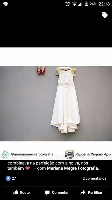 Olá a todos, Finalmente tenho o meu vestido. E o mais engraçado é que tinha experimentado um bem parecido na Pronoivas e que custava 2300€. Acabei por comprar na Noiva Chic no Seixal por 600€ e é mais espetacular e com mais pormenores que o da...