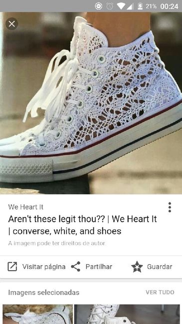 Olá noivinhas!!!! Para o dia C queria levar umas All Star mas não normais, algumas alusivas a noivas como se vê pela net... Já tive no site oficial mas ainda não me responderam ao mail. Sabem se em Portugal há algum sitio que personalize e venda??...