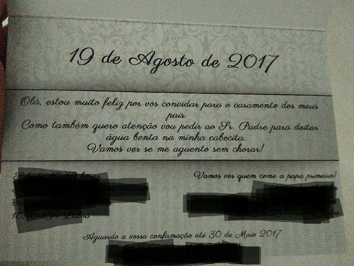 Bom dia Inicialmente ponderados fazer os convites nós próprios. No entanto depois de vermos as várias opções de convites no site da Optimalprint e o preço acessível a que ficava cada convite decidimos arriscar. E fizemos muito bem Ficaram...