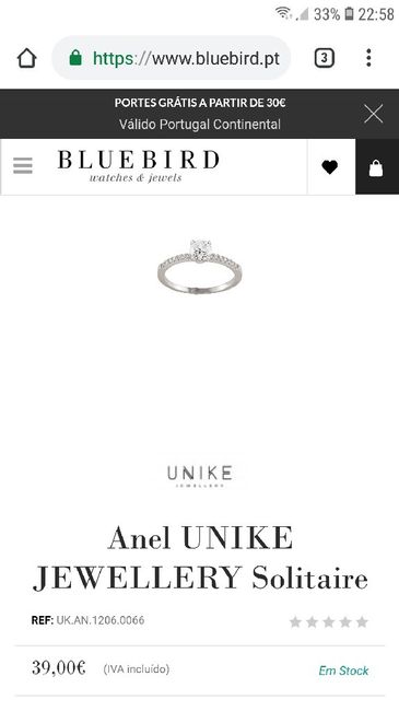 Olá meninas! Bem, apaixonei me kakaka não disse nada ao noivo (ainda) mas também sei que se conseguisse arranjar este anel mais barato seria ótimo! Por acaso sabem onde posso encontra lo a um preço bom? Ele está a 89€ ( para mim esta caro kakaka)....