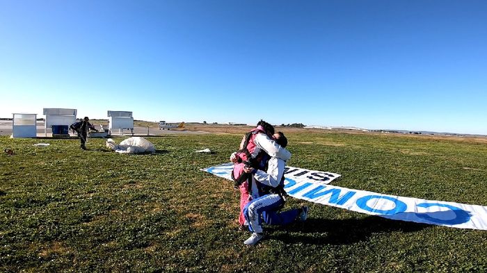 Meninas, fui pedida em casamento hoje de manhã 😍 Fomos fazer paraquedismo e quando estava a chegar cá a baixo, o instrutor disse-me para olhar para a terra porque ele tinha preparado uma surpresa para mim! Então, estava um cartaz enorme à dizer...