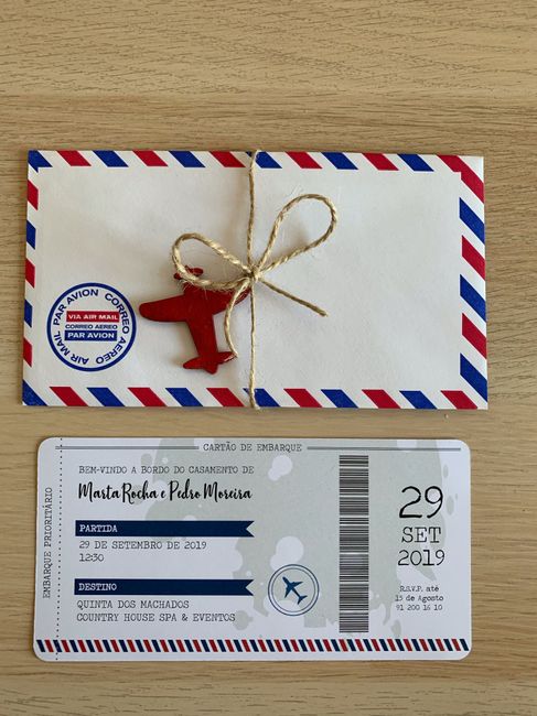 Olá comunidade! Queria partilhar convosco os nossos convites acabadinhos de fazer 😍 Foram feitos por uma amiga que é designer, e ela utilizou o indesign, mas também se fazia bem no illustrator. Saíram muito em conta: -40 envelopes airmail vintage...