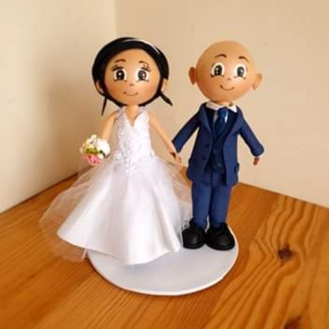 E os meus topos do bolo estão prontos e são lindos....... Podia era ter dito que o noivo estava mais gordinho, agora vai ter que emagrecer 😂 Obrigada à página bonecas em Eva colorido