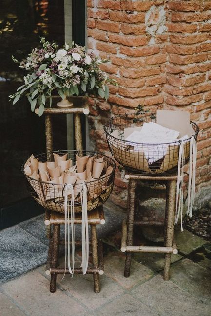 Olá noivinhas. Preciso de ideias . Á entrada da igreja gostava de ter quaisquer apontamentos para colocar os lenços, os laços para os carros e uns saquinhos com o arroz .Preciso da vossa ajuda para depois pedir á decoradora ❣️❣️ A cor do casamento é...