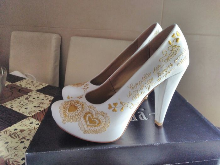 Há 2586 diasA 105 dias já temos mais alguns checks. Os meus sapatos já chegaram, apesar de só os ter visto por vídeo (pela minha mãe) acho que são lindos. São da Namorarte e foram oferta da minha mãe. Já mandei vir acessórios para o cabelo em dourado e rosa....