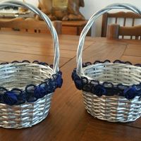 Há 3305 diasHoje terminei os cestos das meninas k vão entrar à frentes a espalhar pétalas. Comprei no chinês de verga ....depois pintei e colei com cola quente a renda....O livro para colarem as fotose deixarem mensagem é k sinceramente acho k ficou piroso. Acho...