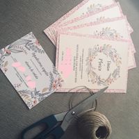 Há 2604 diasHoje tirei o dia para fazer bricolage, o que vos parece noivinhas? Podem não estar dignos de uma top designer mas nem acreditam a alegria com que fiz cada um destes convites (vá o noivo também ajudou a dar o nó no cordel)... (as bolinhas rosa apenas...