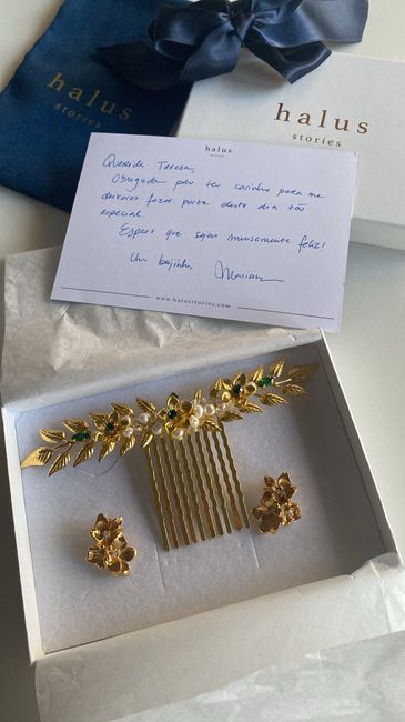 Fui hoje buscar o meu toucado e brincos 😍 São da Halus Stories, recomendo a 1000% Estou encantada. Amei e estou super entusiasmada para ver tudo na prova do vestido no próximo mês 😍 E vocês já têm os vossos?