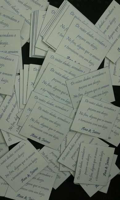 Olá noivinhas Venho mostrar vos os nossos sparcles.. compramos dos normais porque gostamos do efeito mas como já vamos ter fogo de artifício achamos que não era preciso dos grandes! Fizemos um cartão com as 'instruções' e colamos com cola quente...