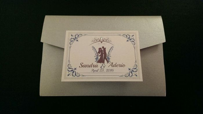 Ora meninas aqui estao nossos convites. Tivemos de fazer em ingles e em portugues rendo em conta que tem convidados de ca. O que acham? Exterior do envelope Interior do convite Ja foram para a impressao.