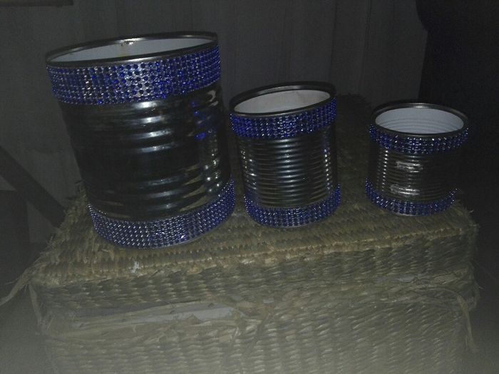 Olá noivinhas , Por aqui a decoração vai andando, fica a dica para quem não quiser gastar muito dinheiro com a decoração . Toda a decoração vai ser em latas com brilhantes igual a cor escolhida para o casamento . Nas lataaa vou colocar flores brancas...
