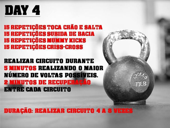 Olá noivinhas Hoje é o segundo dia de treinos! Day 2 Deixo-vos os links dos videos dos exercicios: Flexões Swing Spider com apoio Press ombros Aguentei 60min e fiz 8 voltas. Queria ter feito as 10, mas quando comecei a 7 tive uma caimbra horrível...