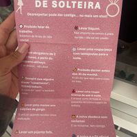 Há 341 diasOlá meninas, Falta oficialmente um mês para a minha despedida de solteira. Está a ser tudo organizado pelas minhas amigas, eu não sei absolutamente nada - só quem vai e as datas. Este fim-de-semana começaram a chegar as regras e missões a cumprir...