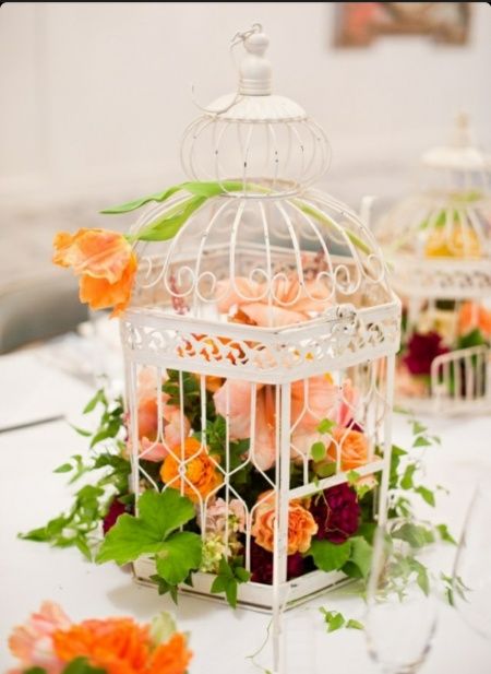 Olá a todas. Gostava que os centros de mesa do nosso casamento fossem com gaiolas brancas mas não tenho ideia do que escolher. Podem dar-me uma ajuda?