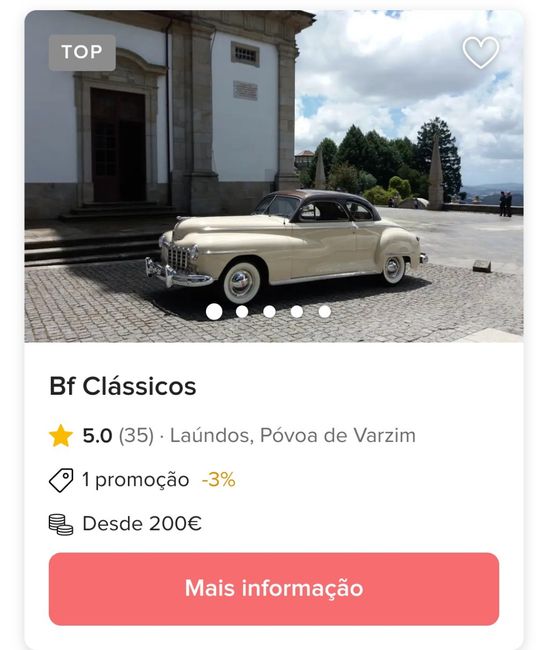 Olá meninas, Queria pedir sugestões de fornecedores de aluguer de carros clássicos com preços acessíveis, até 200€, para fazer o transporte da noiva para a igreja e depois dos noivos para o copo de água.