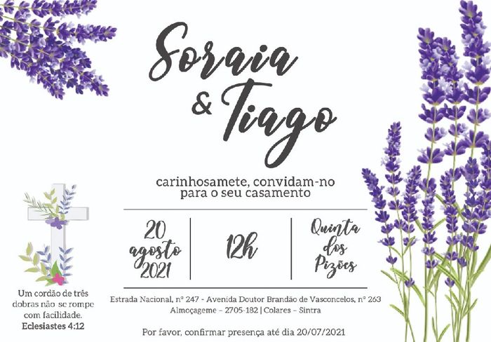 Olá noivinhas como estão? Venho aqui mostrar-vos o nosso convite de casamento, embora falte um ano estou super entusiasmada e quero entregá-los já, no entanto tenho receio que seja muito cedo e que as pessoas se esqueçam 😅😅 por outro lado, para o...