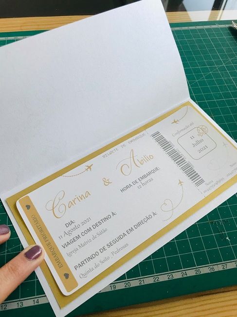 Ola Noivas, estamos neste momento a fazer os convites de casamento com o tema viagem e vai ser tipo boarding pass. Agora Estamos indecisos em qual e que fica melhor. Com o mapa em preto, o com o mapa o dourado. Ajudam 😬😬😬😬