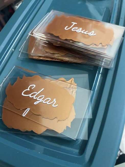 Bom dia comunidade Venho por aqui mostrar a produção que andou aqui por casa, para, os marcador de lugar personalizado. Comprei as peças de acrílico através da Shein, a caneta permanente numa loja chinesa e a tinta também! Quisemos personalizar o...