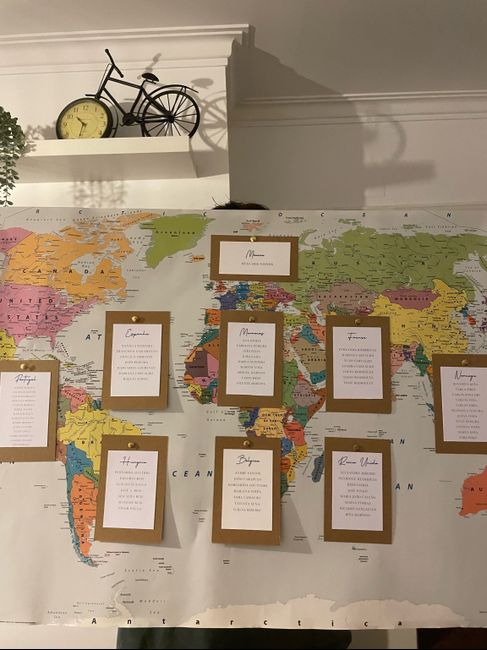 Outro DIY que acabamos ontem foi o mapa das mesas (literalmente um mapa eheh) Esperamos até a última para montar duas das mesas, mas finalmente tivemos a confirmação dos convidados que faltavam e pudemos por mãos a obra 😂
