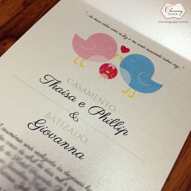 Tenho mt duvidas para os convite, pois vou fazer casamento e Batizado e tenho k juntar tudo em um e ao mesmo tempo ser original. Alguem k va passar pelo mesmo? e k tenha ideias? Obrigada