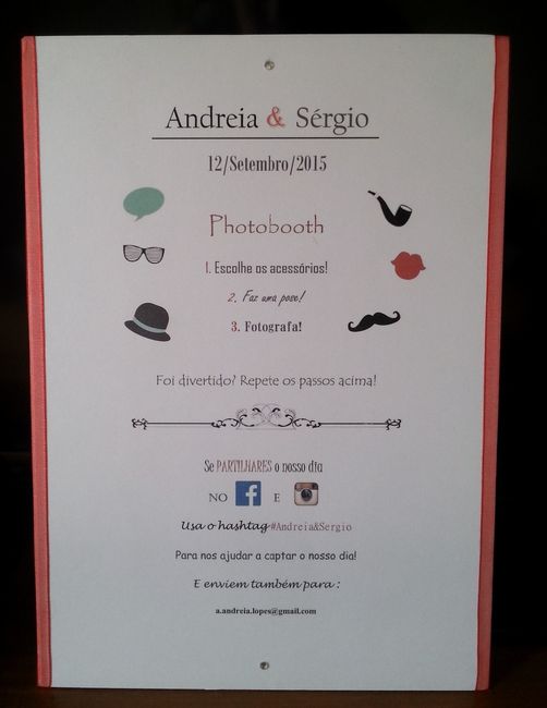 Olá noivinhas/os! Terminei hoje as instruções para o photobooth, para por na mesa onde vão estar os enfeites (que ainda estou a fazer/colas/imprimir) lol Aqui vai a foto... o que acham? Também vão ter? photobooth Beijinhos*