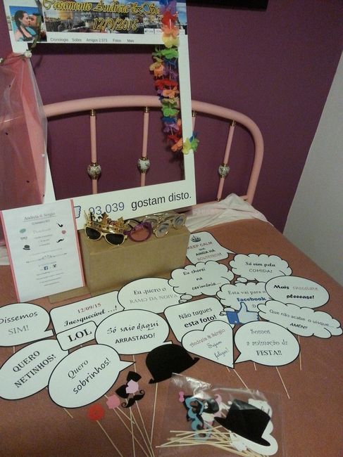 Olá again Desta vez, e estando na recta final, Photobooth é para vos mostrar o photobooth já acabado! Queria umas plumas e uns chapéus mas não encontro em lado nenhum Que tal? Beijinhos