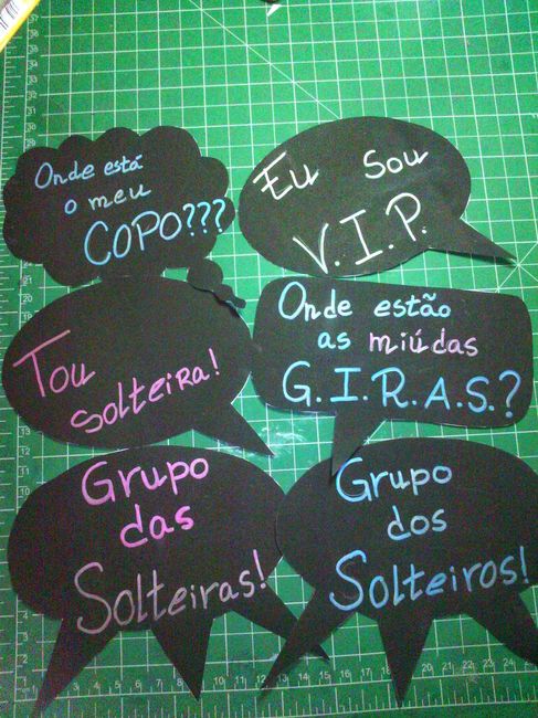 - Letras; - Cabide noiva; - Cabide noivo; - Sapatos; - Marcadores de mesa; - Canetas para livros; - Livro de honra; - Livro de moradas. O livro de moradas é porque seremos nós a personalizar dvd's com as fotografias.