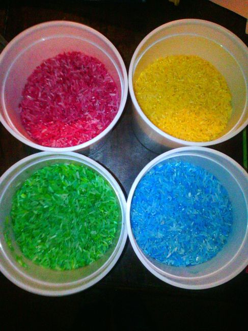 Olá Noivinhas! Já ouvi falar do arroz pintado....também fizeram? podem-me dar dicas de como é o processo? Eu gostava de pintar de Roxo como é que isso se faz? Beijinhos e bons preparativos