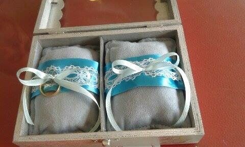 Olá (; vi algumas ideias para levar as alianças.. Comecei por comparar a caixinha e por pintar a spray .. Agora vou fazer duas almofadas e depois mostro como ficou