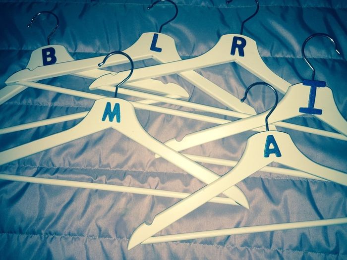 Ola.. Tendo em conta que tenho 6 damas e os vestidos são muito idênticos lembrei me de comprar cruzetas e colocar a inicial do nome delas tendo em conta que nenhuma coincide! Ficou bastante simples! Para mim e para o noivo adaptei e coloquei uns...