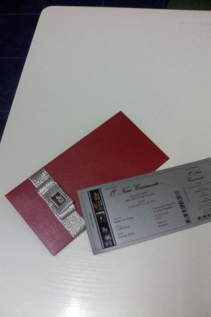 . Aqui estão os meus convites, deram muito trabalhinho mas valeu mais q a pena! Estao lindos, e homemade!! O tema é o cinema e os convites são a imitar os bilhetes de cinema. Nesta fase,em q nos chegaram a pedir cerca de 170€ por 100 convites, a...