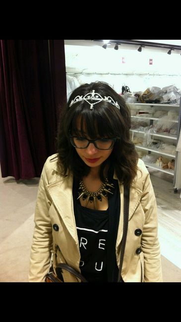 Ontem fui ver várias lojas de casamento. . Só mesmo para dar uma vista de olho. . E sempre pensei em usar tiara. . Mas não sei bem se me fica bem. . Eu acho isso giro. . Digam me la o que pensem. . Estou em dúvida help meninas/os