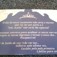 Há 3383 diasDecidimos que não queriamos entregar à nossa família e aos nossos padrinhos convites iguais aos restantes convidados porque na realidade eles são mais que convidados, são pessoas indispensáveis e que nem sequer precisamos de confirmaçãode...
