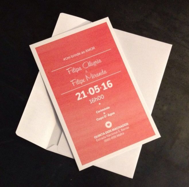 Há 3719 diasOla noivinhas e noivinhos!Queria partilhar convosco o site onde mandámos fazer os nossos convites - VISTAPRINT.Ficaram simples mas muito bonitos, entregaram em casa em 1 semana, escolhemos o melhor tipo de papel, cor em frente e verso e mesmo assim...