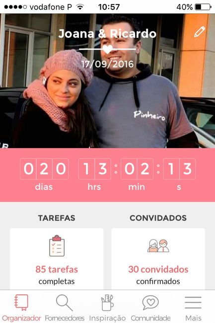 Bom dia noivinhas Como o título indica estou a 20 dias do meu dia C e por aí como andam esses contadores?!Bom fim se semana beijinhos